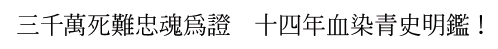 在中国的领土上,经过历朝历代,曾为了防卫国土而建造了长城的伟大建筑, 这是人类历史上所罕见之浩大的国防工程,充分显示出中国的防御重於侵略之民族性。 中国的长城直到如今还是令所有参观的人,都感到肃然起敬。但是,事实上,历史的长 城,并没有办法保障中国不受敌人的侵略,而中国的军民,曾经在抗日战争之中 ,以中国人的生命,筑起一条又一条的御敌防线,成为不屈不挠的血肉长城,这 个让中国境内每寸山河,都被血泪浸泡的历史事实,以及中国人绝对不肯屈 服的抵抗意志,就是中国人永远不能被敌人消灭的关键所在,这些在中国境内无 数的血肉长城历史,应该永远活在历史的记忆之中,也活在所有的中国人心中。