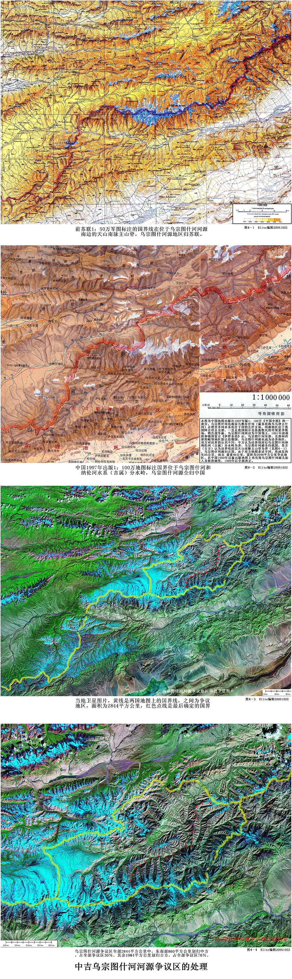 乌宗图什河也称琼乌散库什河(前苏联称为乌津古什河)是塔里木河水系托什干河的支流,河源地区位于我国阿合奇县北部,一直是我国柯尔克孜族牧民的传统夏季牧场。鸦片战争前,乌宗图什河周边为中国领土,1881年清政府和俄国签订《伊犁条约》后,乌宗图什河东部、北部和西部的毗邻地区割让给俄国,乌宗图什河源也成为边界地区,中方认为边界线应以乌宗图什河和纳伦河(俄属)分水岭为界,乌宗图什河源全归我国,俄方认为边界线应以天山南脉主山脊为界,乌宗图什河源归俄国。双方地图表述不同,形成东西长85公里、南北最宽48公里,面积为2844平方公里争议地区。